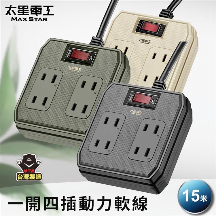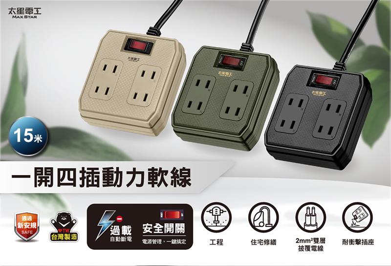 【太星電工】一開四插動力軟線2P15A/15米(混色) OFB41215