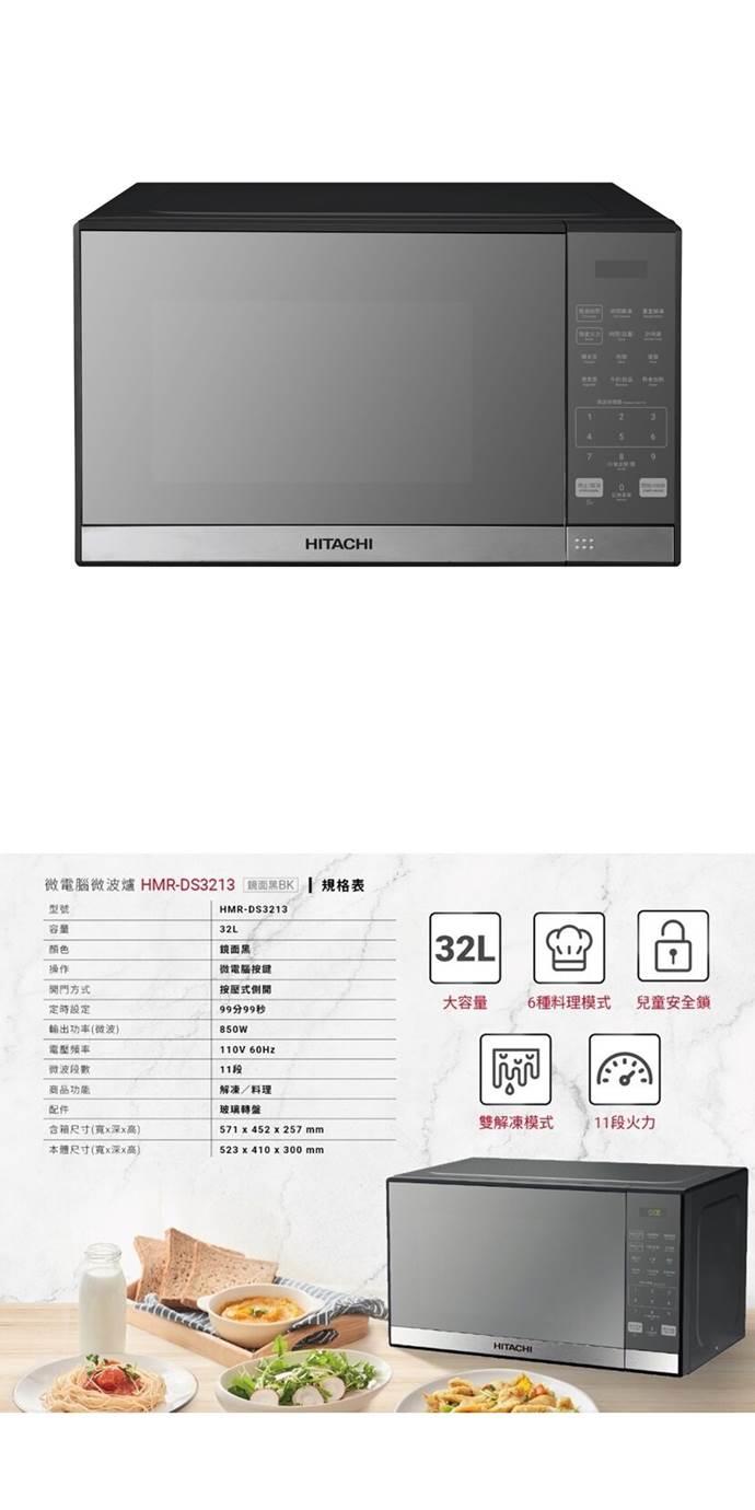 HITACHI 日立 32公升 微電腦微波爐 鏡面黑 HMRDS3213