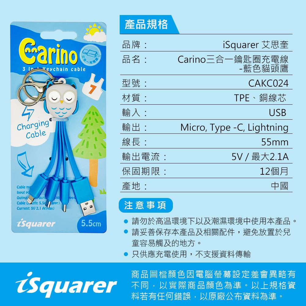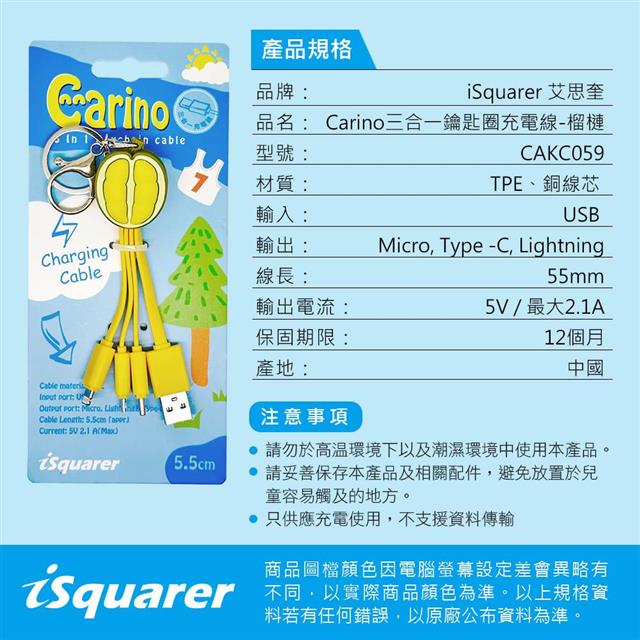 iSquarer Carino三合一鑰匙圈充電線(多款可選)
