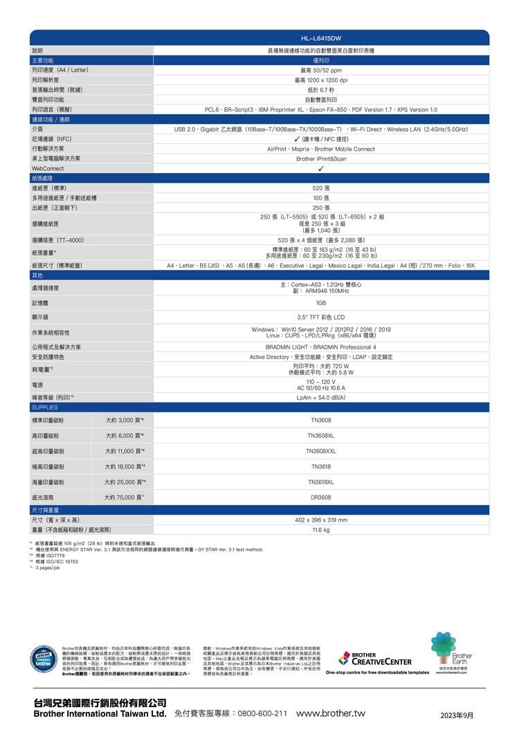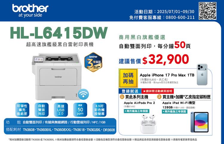 Brother HL-L6415DW 商用黑白極速雷射印表機
