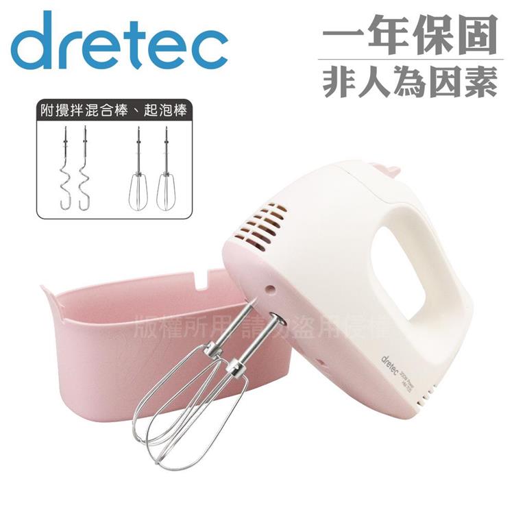 【日本dretec】手持型雙頭電動攪拌機-300W-馬卡龍粉(HM-705PKKO)