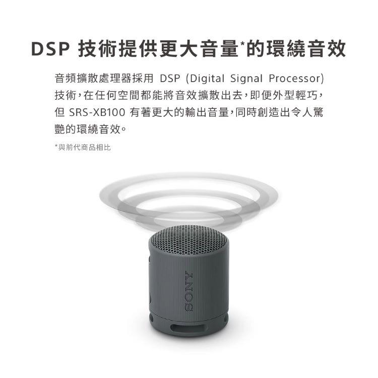 ● 令人驚豔的聽感體驗 :採用 DSP (Digital Signal Processor) 技術,在任何空間都能將音效擴散出去,讓XB100有著更大的輸出音量,同時創造出令人驚艷的環繞音效