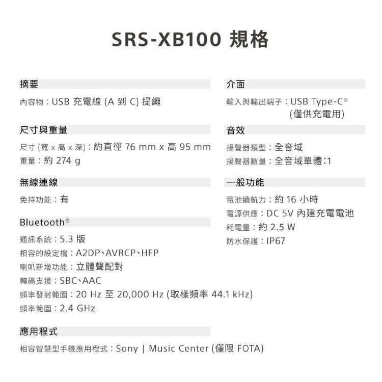 【SONY索尼】SRS-XB100可攜式無線藍牙喇叭