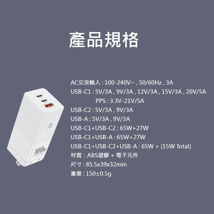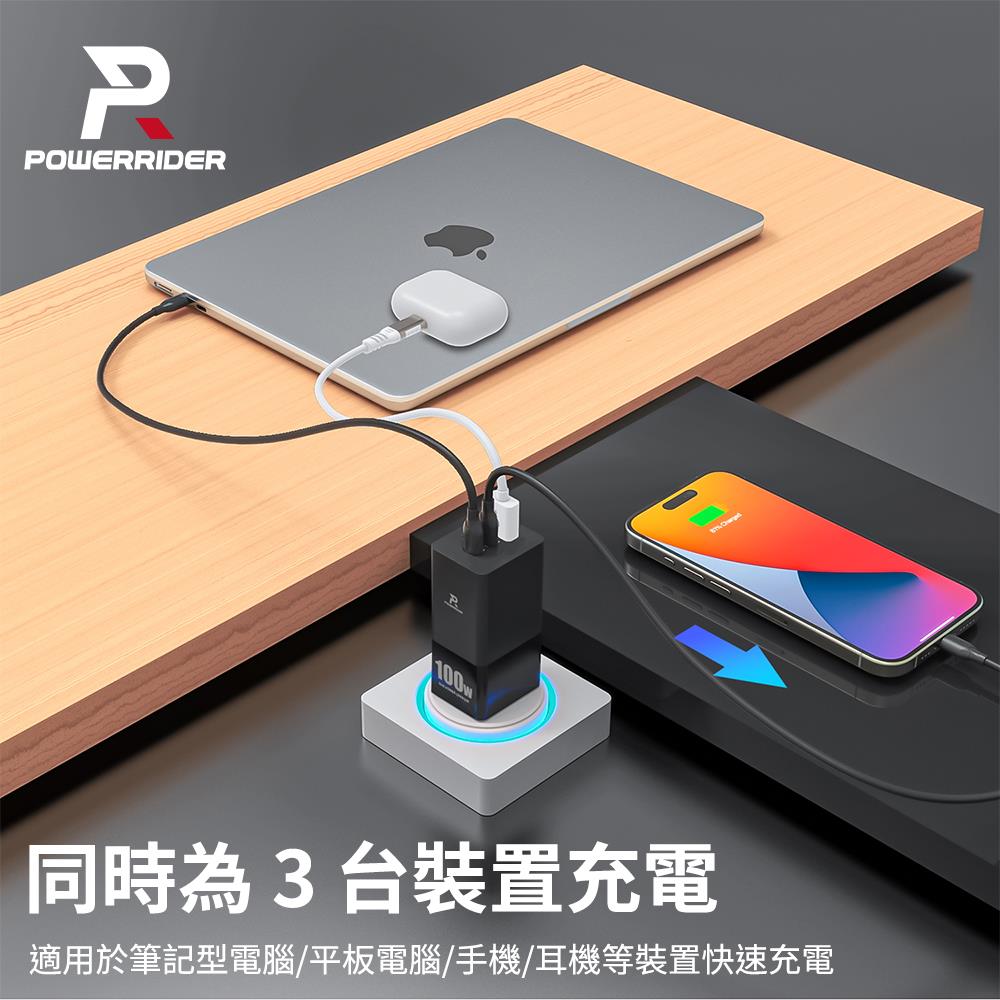 PowerRider 100W GaN氮化鎵三孔折疊快速充電器 PD100CA