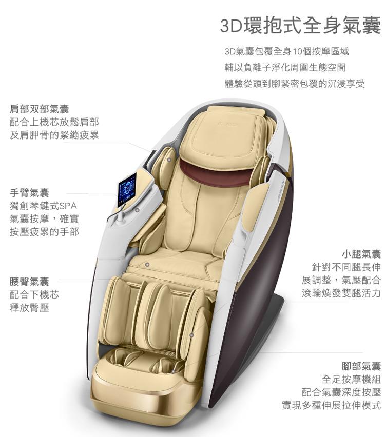 3D氣囊包覆全身10個按摩區域,體驗從頭到腳緊密包覆