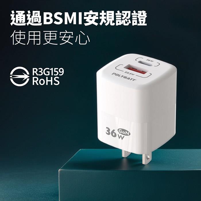 POLYBATT 36W GaN氮化鎵充電器 GAN09-36W