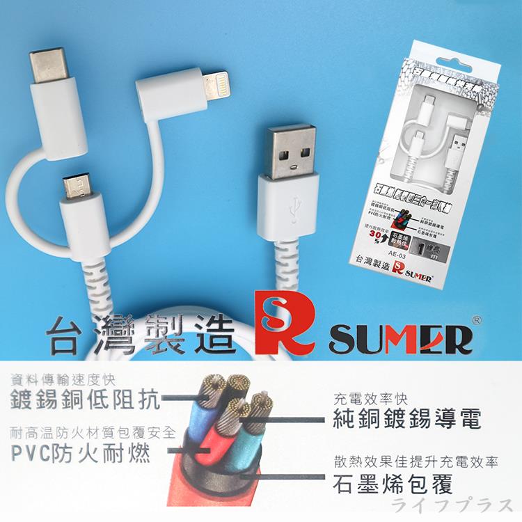 多用途接頭,結合TYPE-C、MICRO USB、iPod / iPhone / iPad介面適用。