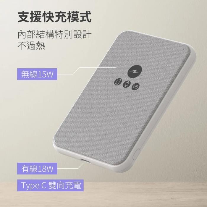 18W快速雙向充電,具備電量指示燈。強力磁吸,無線充電不怕掉,支援全協議快充