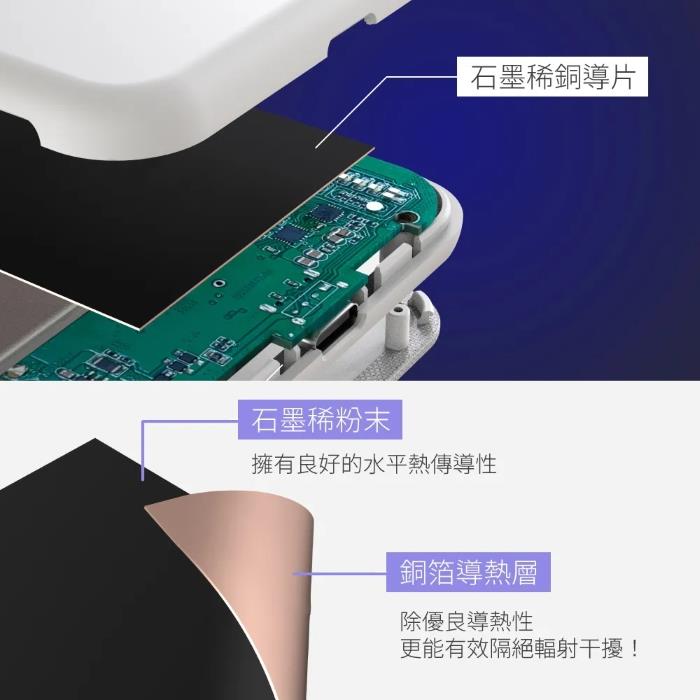 以石墨稀銅導片強化散熱,確保充電過程中保持穩定,不卡頓,均勻散熱。