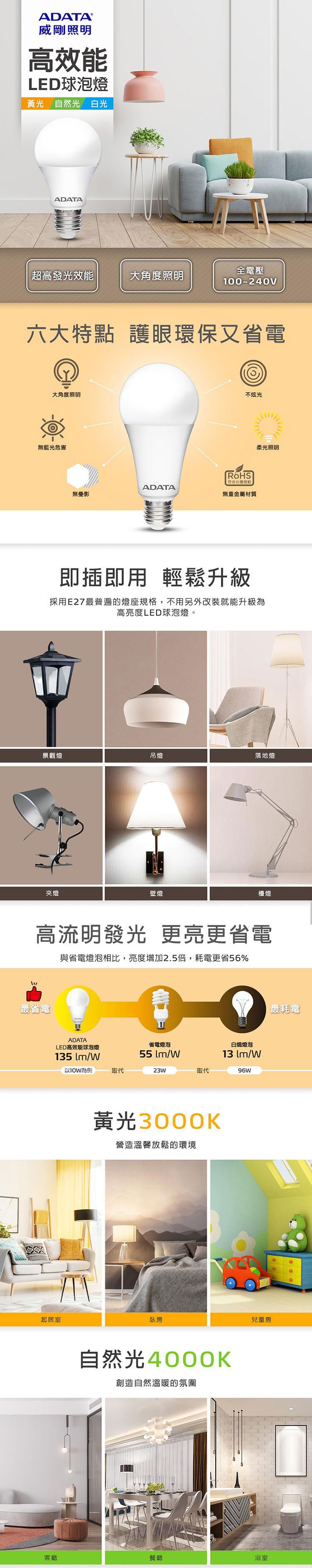 ADATA 威剛 8W LED 高效能燈泡-20入