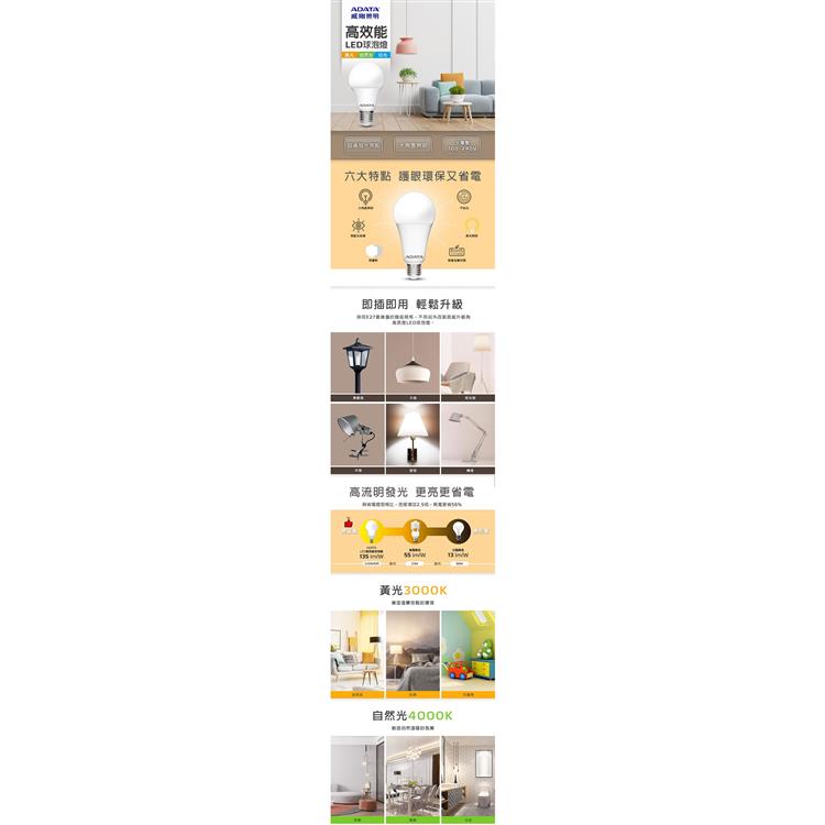ADATA 威剛 13W LED 高效能燈泡-6入