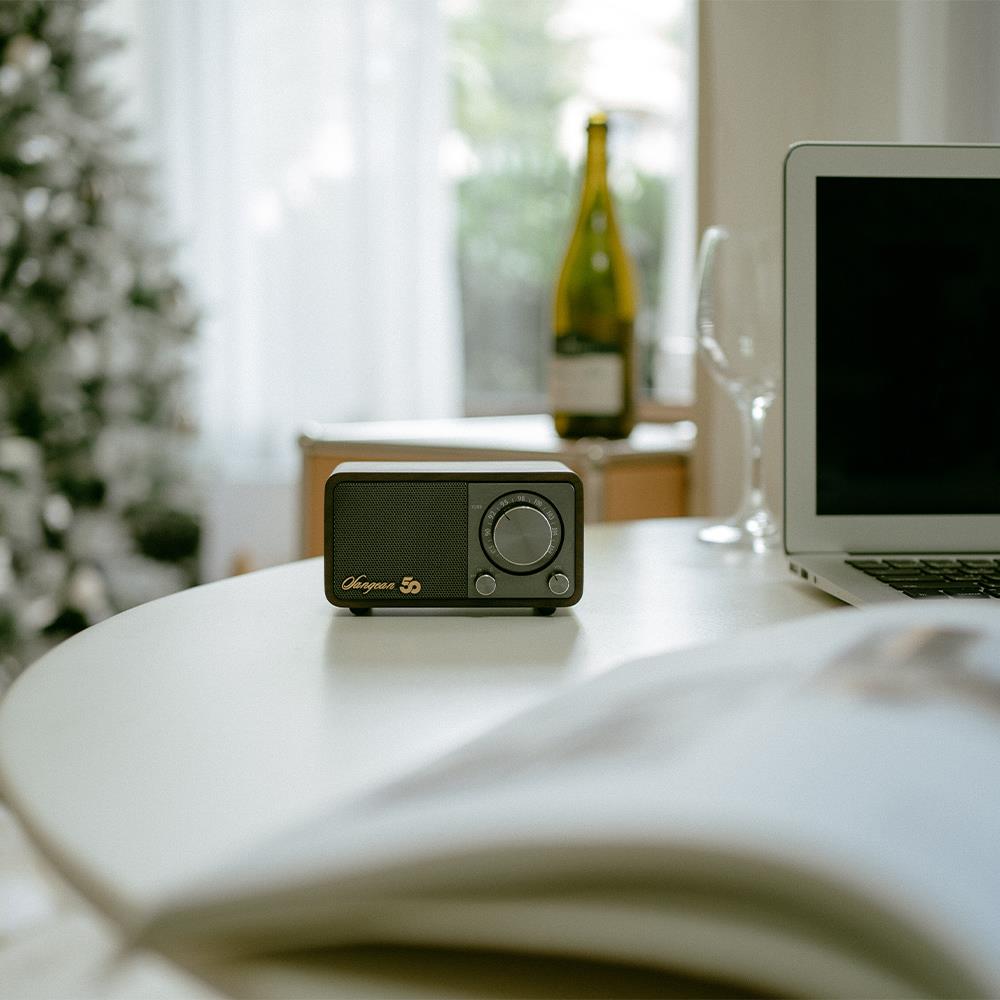 精緻小巧的外型宛如縮小版的傳統桌上型收音機,可以隨心所欲地擺