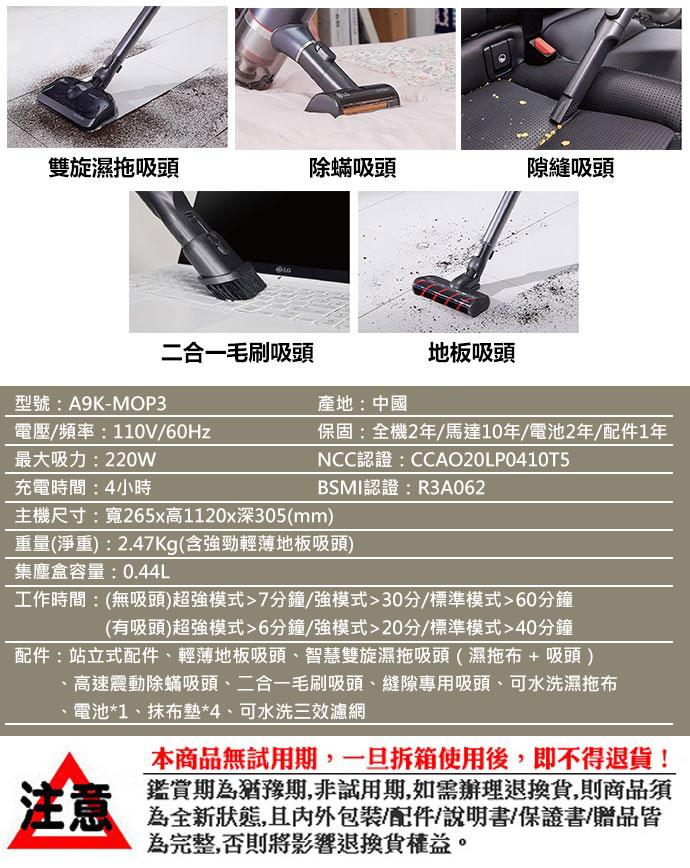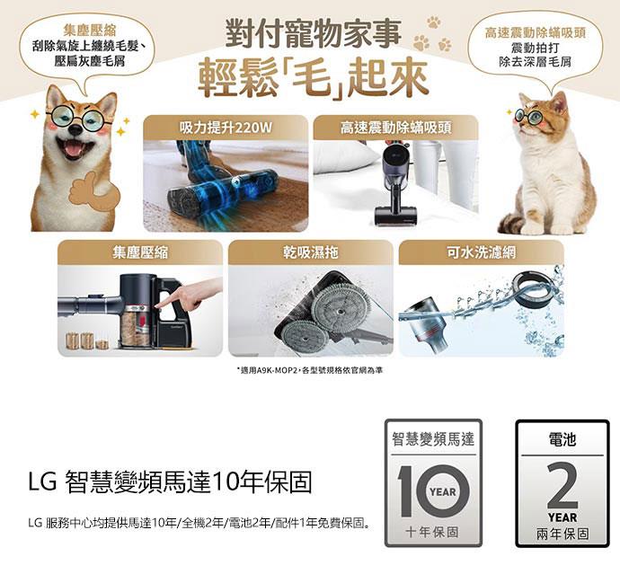 【LG樂金】A9 K+系列濕拖無線吸塵器(寵物家庭) A9K-MOP3