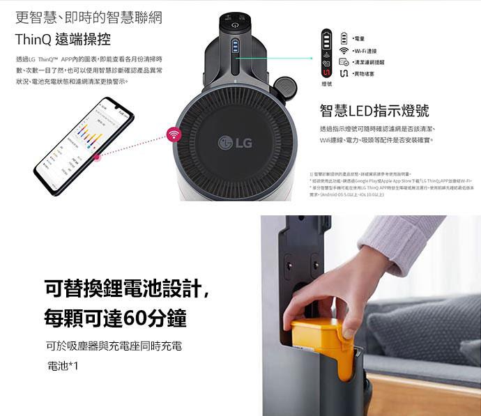 ★ThinQ遠端操控: 掌控電量、濾網、清潔日誌等