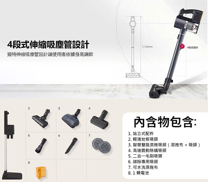 ★配件:站立式配件、輕薄地板吸頭、智慧雙旋濕拖吸頭(濕拖布 + 吸頭)