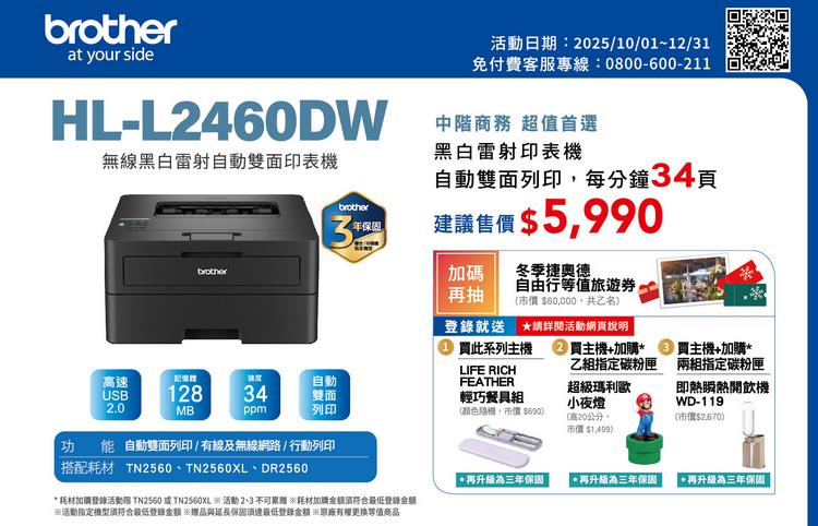 *耗材加購登錄活動限TN-2560及TN-2560XL