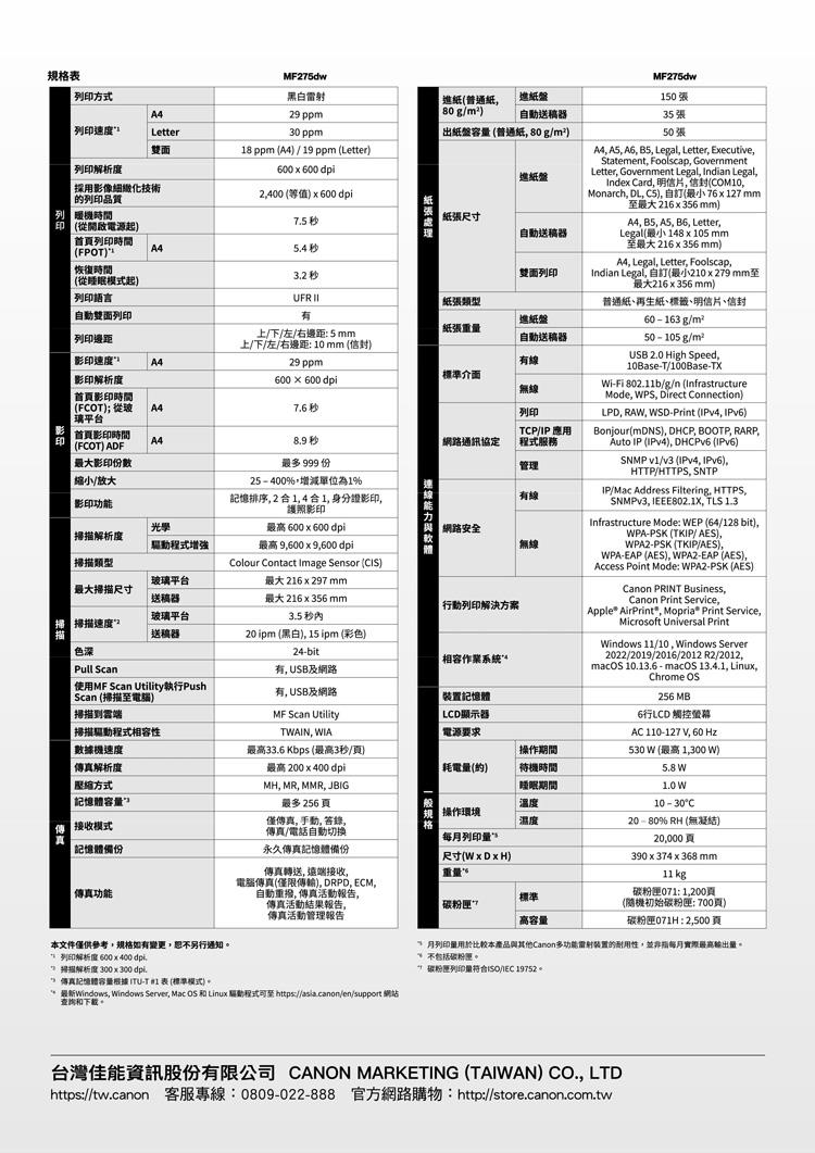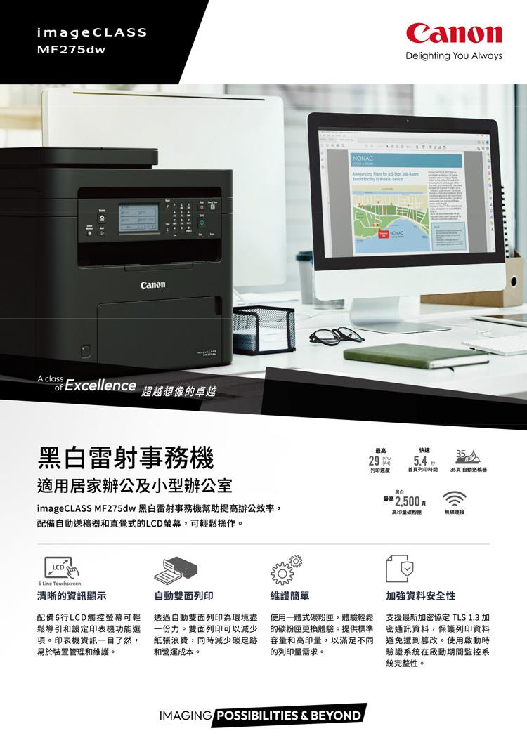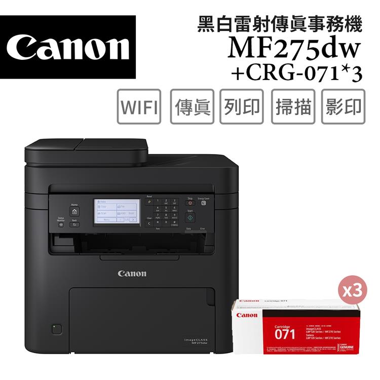 Canon imageCLASS MF275dw 黑白雷射傳真事務機+CRG-071 原廠碳粉匣(3支)