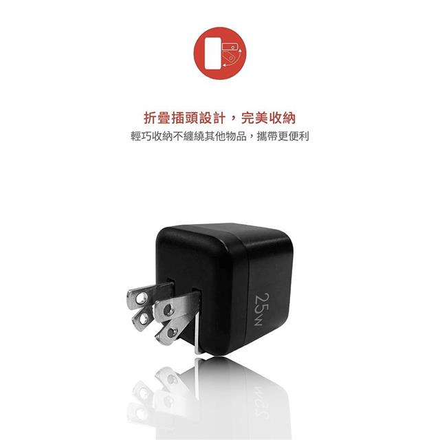 輸出:USB-C: 5V/3A, 9V/2.22A (20W Max) USB-A: 5V/1A (5W Max) USB-C+USB-A: 20W+5W (25W Max)