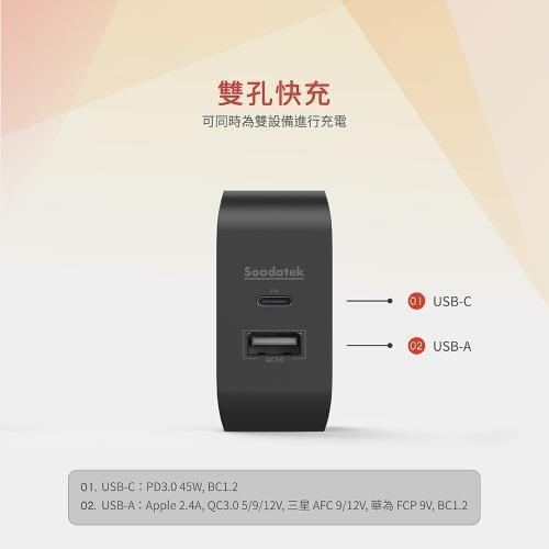 雙孔快充、摺疊插頭設計、多重安全保護裝置-