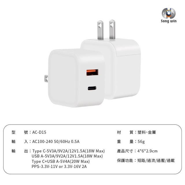 SongWin 氮化鎵33W快速充電器ACD15/白