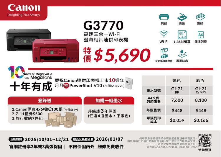 ■活動網址:https://www.canon.com.tw/PromotionNews/PromoNews.aspx