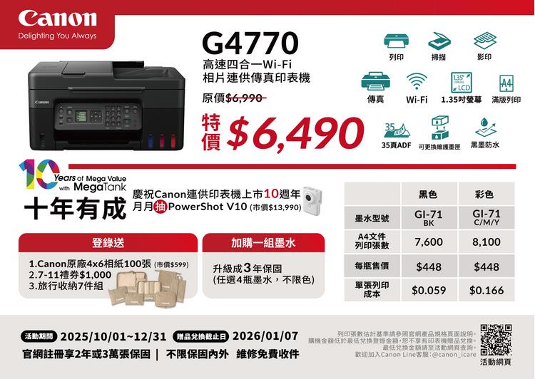 ■活動網址:https://www.canon.com.tw/PromotionNews/PromoNews.aspx