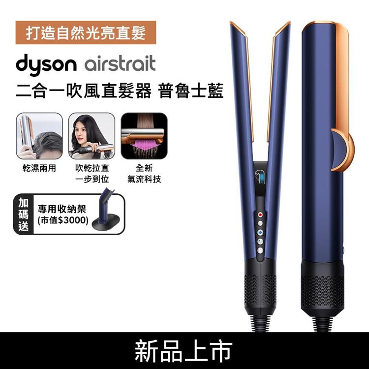 【送收納架+收納包+電動牙刷】Dyson戴森 Airstrait二合一吹風直髮器 HT01 普魯士藍