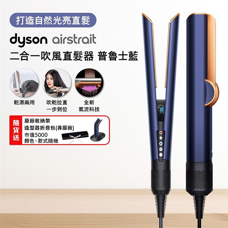 Dyson戴森 Airstrait二合一吹風直髮器 HT01 普魯士藍【送原廠架+收納包】
