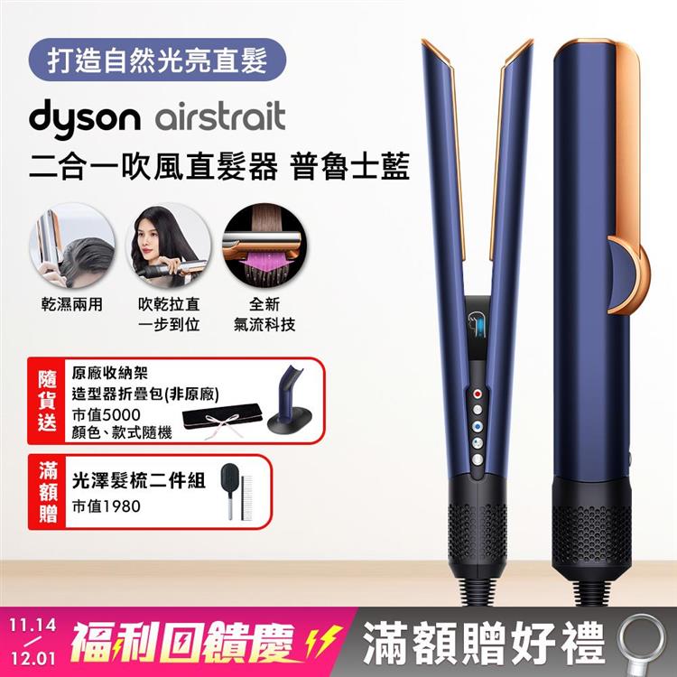 Dyson戴森 Airstrait二合一吹風直髮器 HT01 普魯士藍【送原廠架+收納包+光澤雙梳】