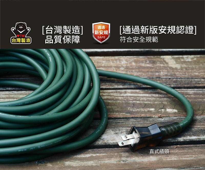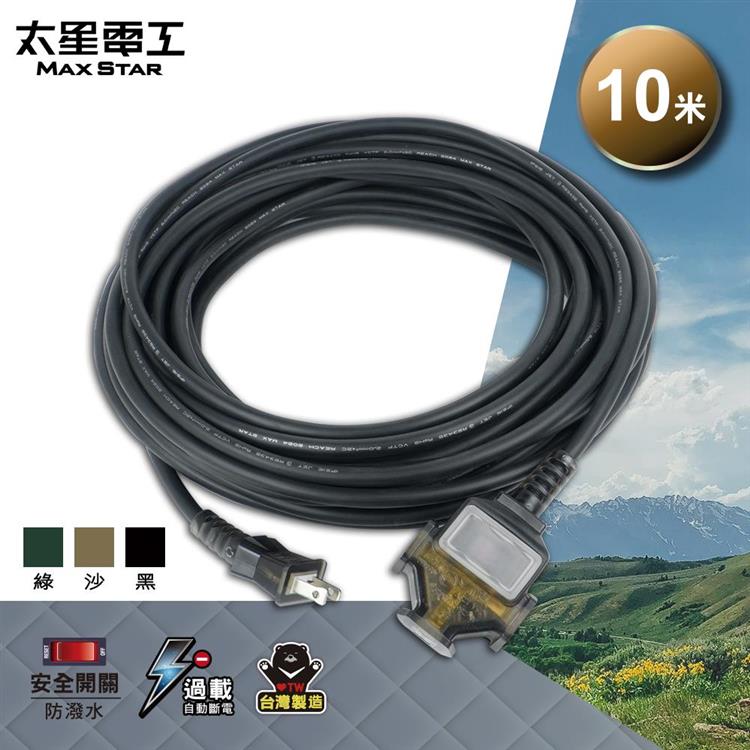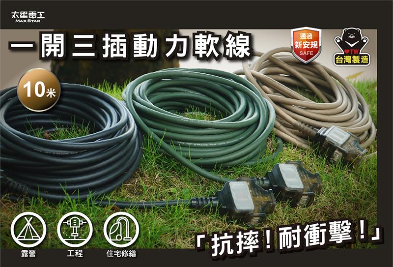【太星電工】一開三插動力軟線/2P 15A 10米(黑色/綠色/沙色) OFC31210