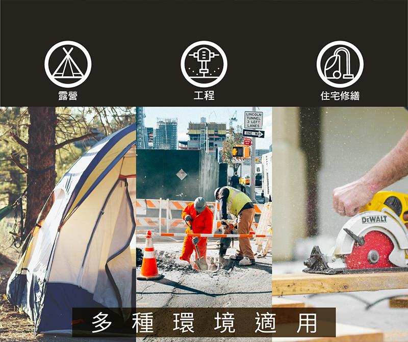 6.露營、工程、住宅修繕等多種環境皆適用。