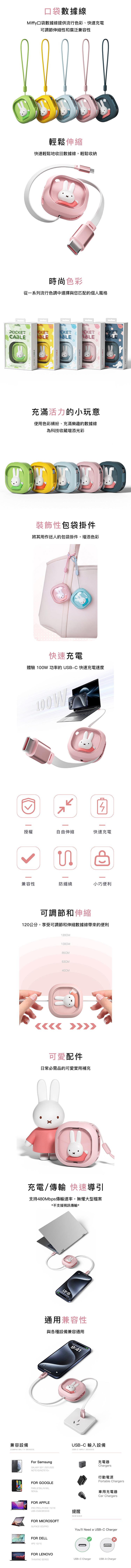 Miffy x MiPOW C to C伸縮數據傳輸線【5色】