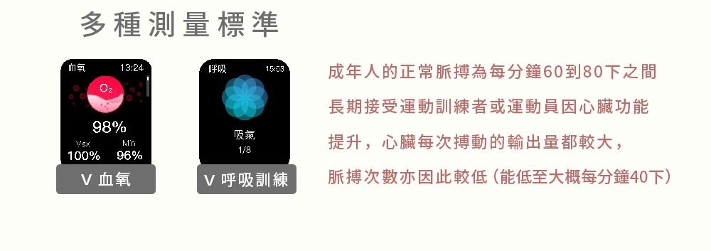 內建感應器      心率感應器/ 紅光高精密血氧感測器/ 三軸加速度感應器