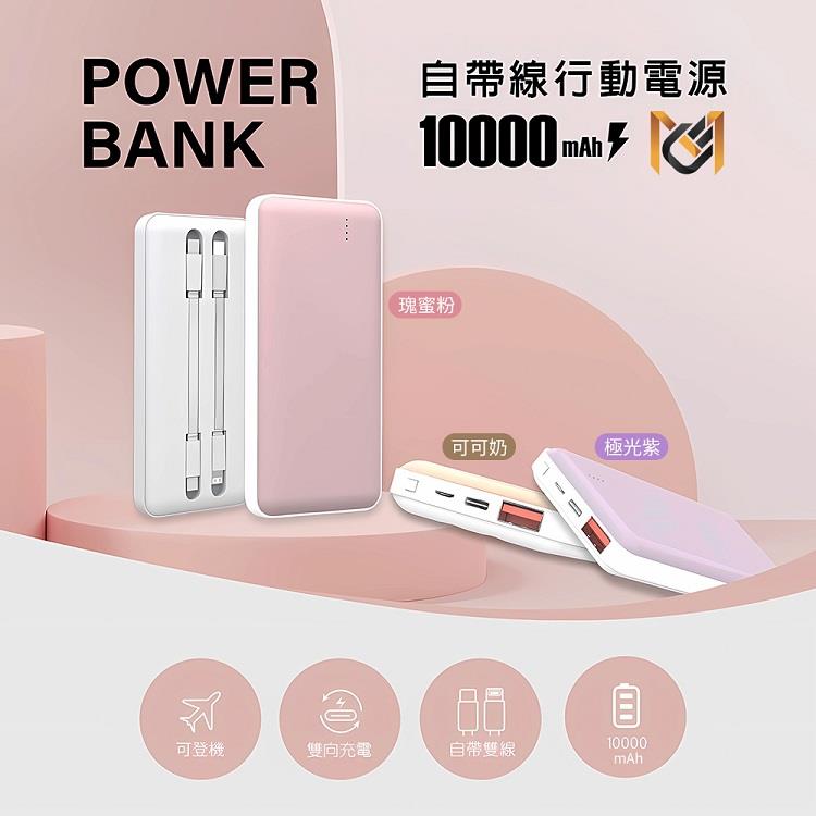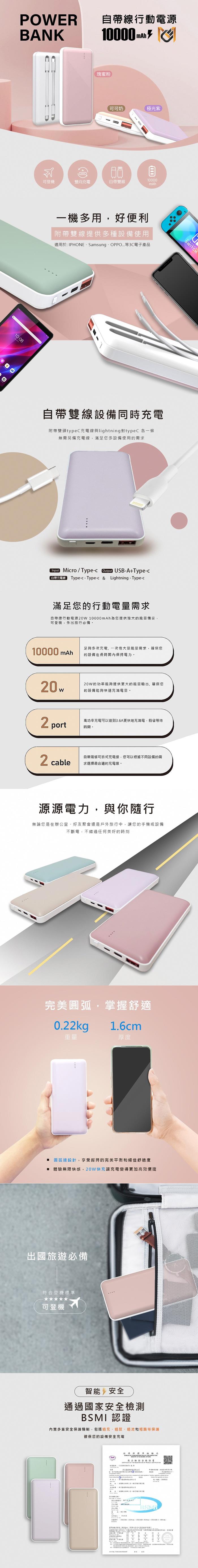 【MCK科技】10000mAh 自帶雙線20W快充行動電源(Type-C&Lightning線)MCK-NP1S
