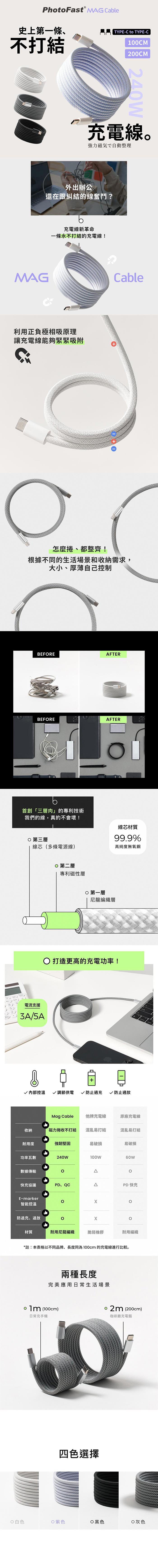 【PhotoFast】Mag Cable 240W Type-C to Type-C 磁吸收納編織快充線/充電線 2M