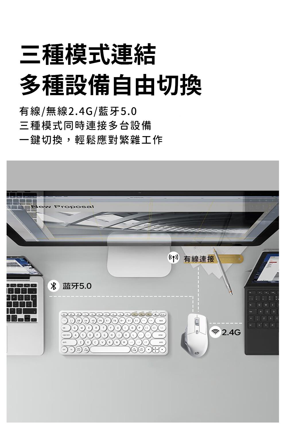 連接方式:藍牙5.0 + USB 2.4GHz無線傳輸 + 有線