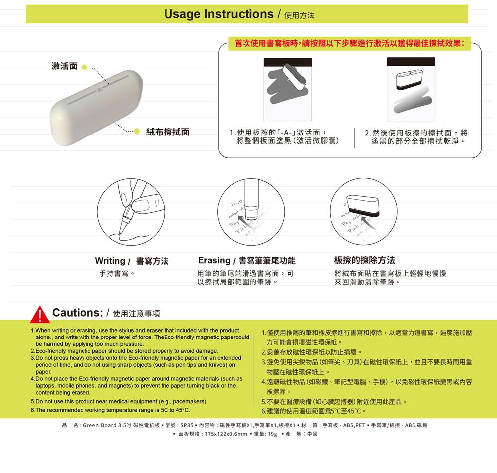 產品名稱: Green Board 8.5吋 磁性電紙板