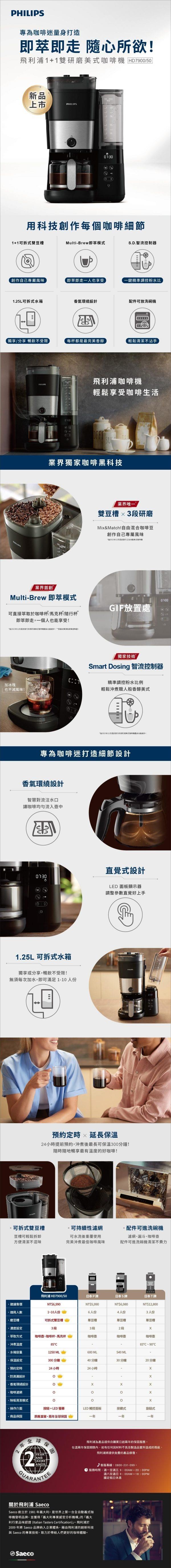 *1+1可拆式雙豆槽 創作專屬風味 *Multi-Brew即萃模式 即萃即走 *香氣環繞設計咖啡壺 *S.D.智流控制器 一鍵精準調控粉水比