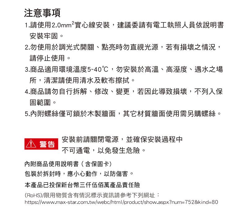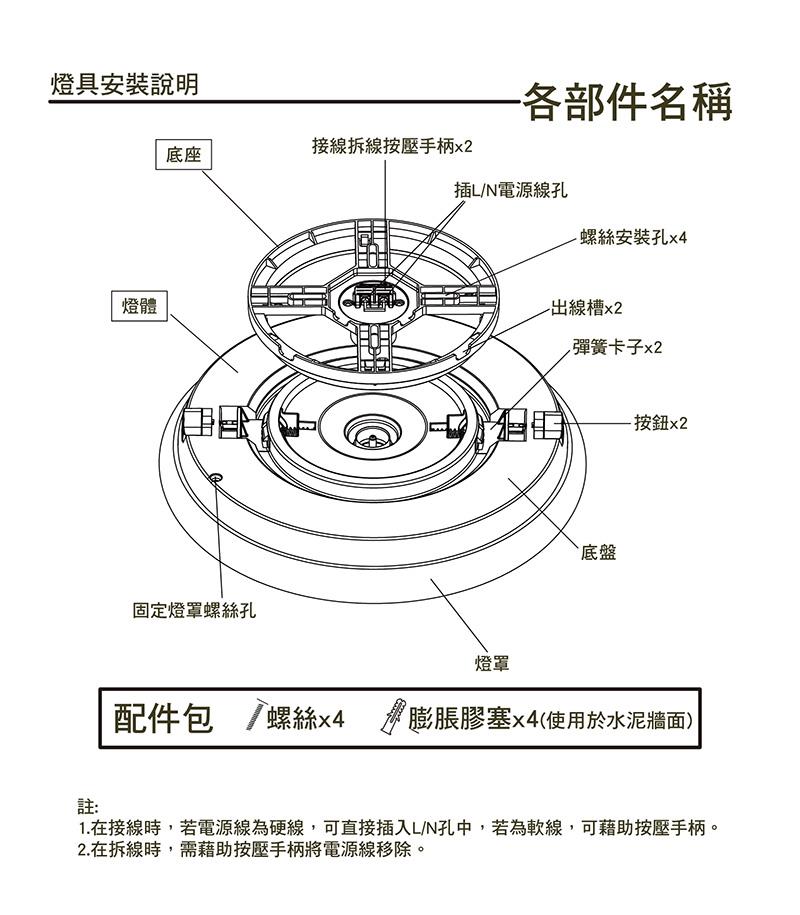 材質:PS(聚苯乙烯)燈罩、PP(聚丙烯)