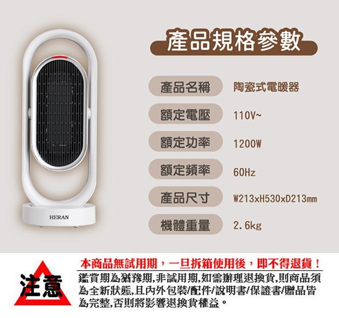 【禾聯HERAN】奈米銀抑菌陶瓷式電暖器 HPH-13DH310