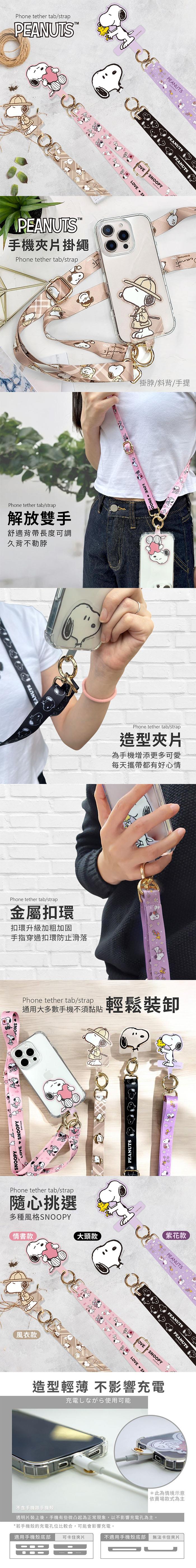【正版授權】SNOOPY史努比 多功能手機夾片掛繩組