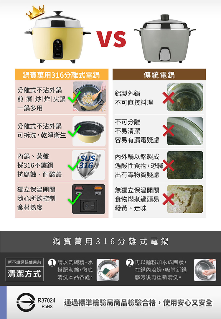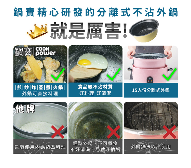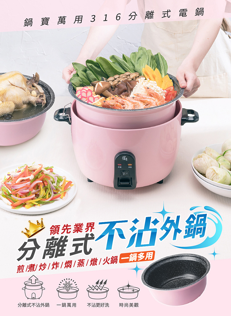 外鍋採分離式設計,好清易潔 拆洗更方便