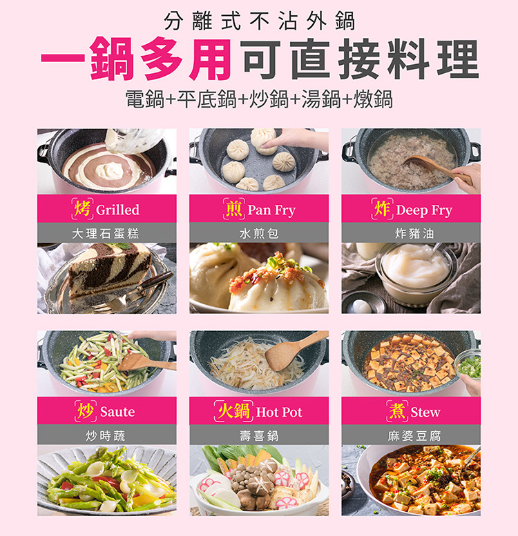 分離式外鍋可直接在鍋內料理食物,美味更升級