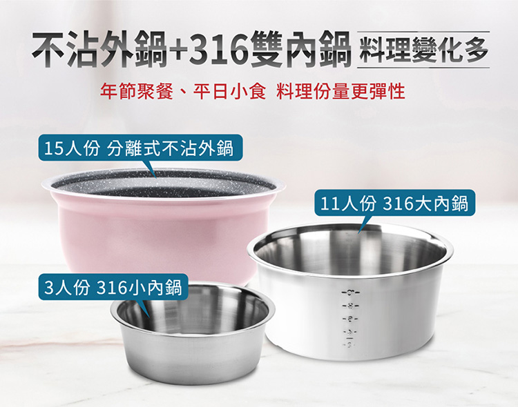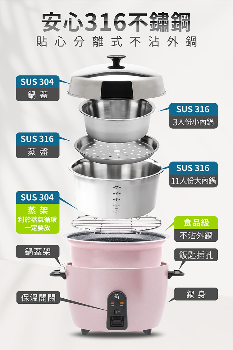 316頂級不鏽鋼內鍋,安全、健康、耐用