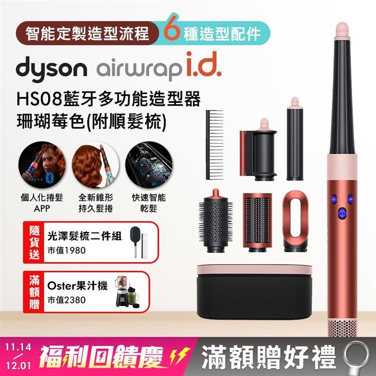 Dyson戴森 Airwrap i.d. HS08藍牙多功能造型器 珊瑚莓色(贈光澤雙梳+果汁機)