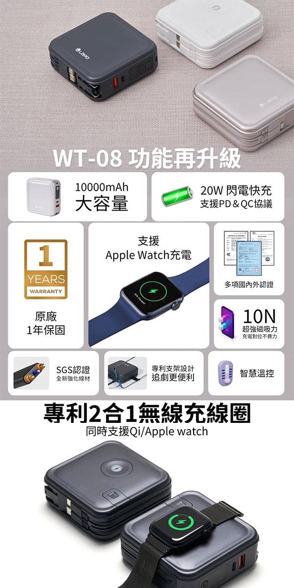 LaPO WT-08 10000mAh 多功能無線磁吸快充行動電源(支援Apple Watch)