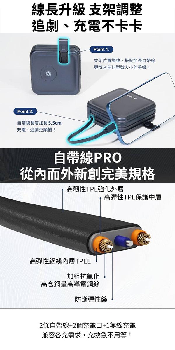 ◎2種自帶線+雙口輸出+磁吸無線充電,最高支援五台設備同時充電