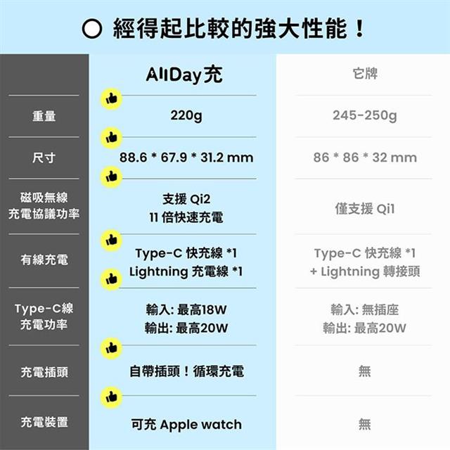 充電協議:相容於Qi2、Qi | PD3.0/PPS | APPLE 2.4A