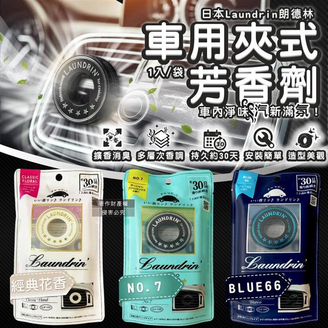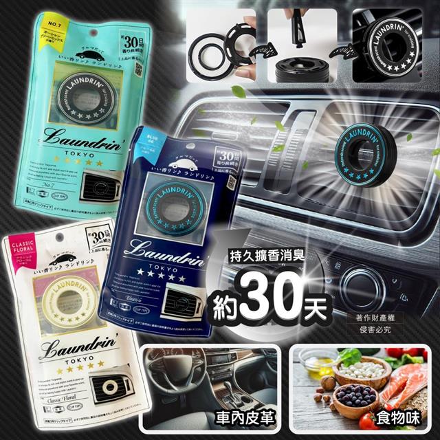 日本Laundrin朗德林-TOKYO汽車空調出風口專用夾式消臭芳香劑1入/袋 (車用清新擴香劑/質感車載香氛環/淨化車內異味食物味/持久馨香約30天)