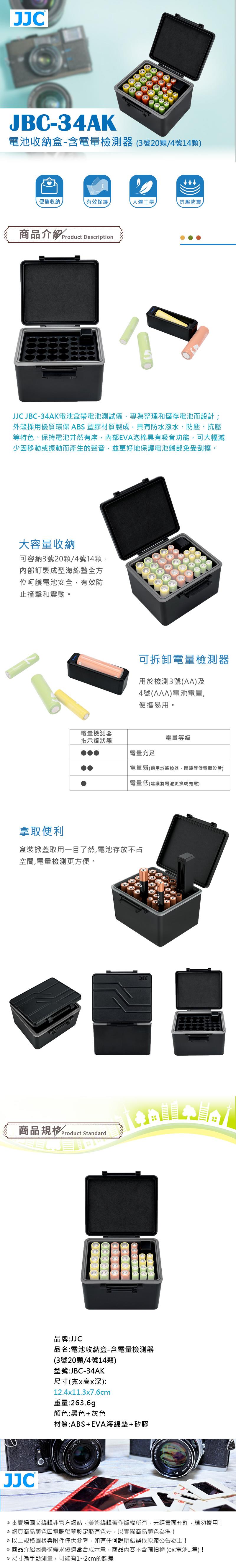 JJC 電池收納盒-含電量檢測器(3號20顆/4號14顆)JBC-34AK